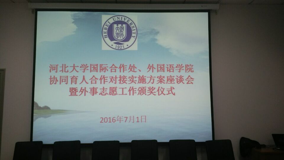 7月1日下午,为深入挖掘我校国际化合作潜力、整合外事活动智力资源、提升文科应用型人才培养质量,我校国际合作处、外国语学院在新校区外国语学院一楼会议室举行了协同育人合作对接实施方案座谈会暨外事志愿工作颁奖仪式。双方领导、工作人员以及志愿者同学60余人出席了此次座谈会及颁奖仪式。